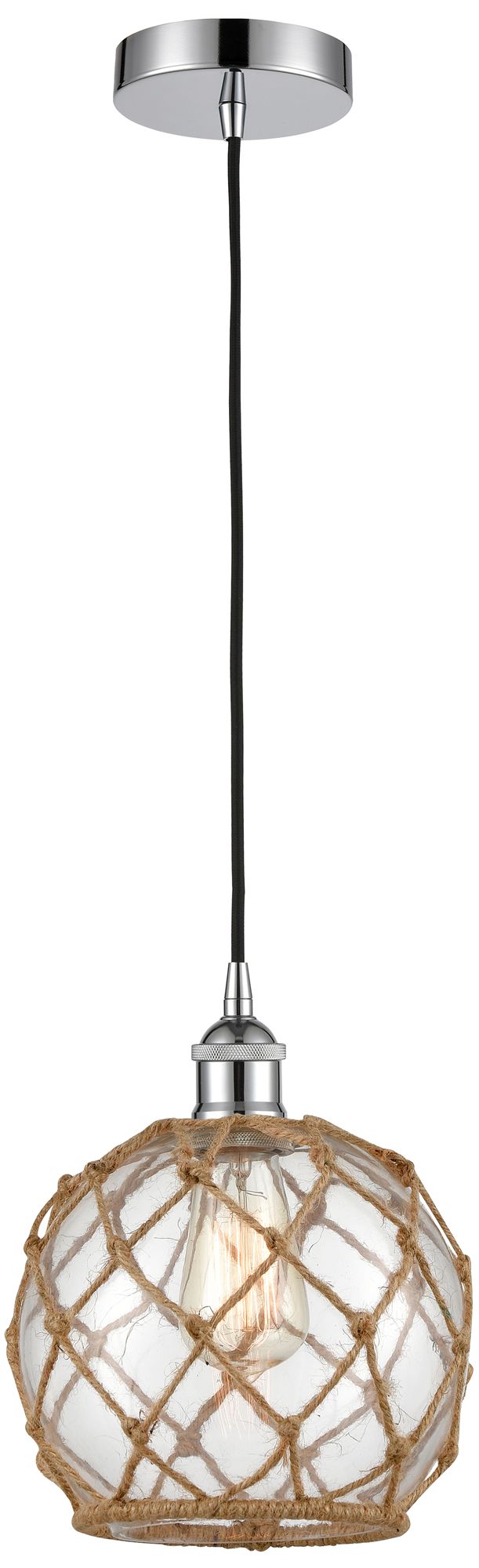 Edison Farmhouse 8" Chrome Corded Mini Pendant w/ Clear & Brown Ro