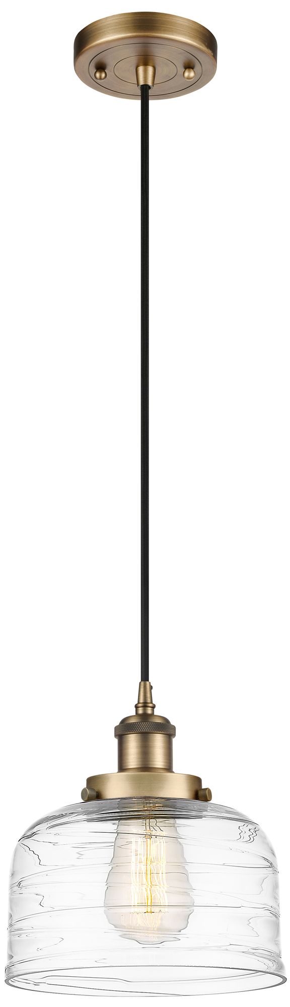 Ballston Urban Bell 8" Brushed Brass Corded Mini Pendant w/ Deco Shade