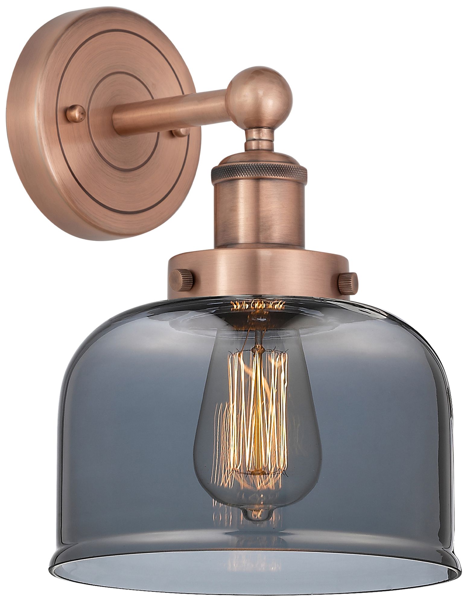 Large Bell 10"High Antique Copper Sconce With Plated Smoke Shade
