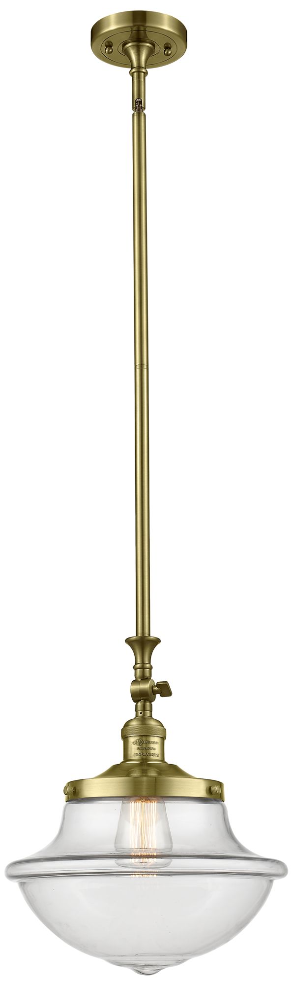 Franklin Restoration Oxford 12" Antique Brass Mini Pendant w/ Clear Sh