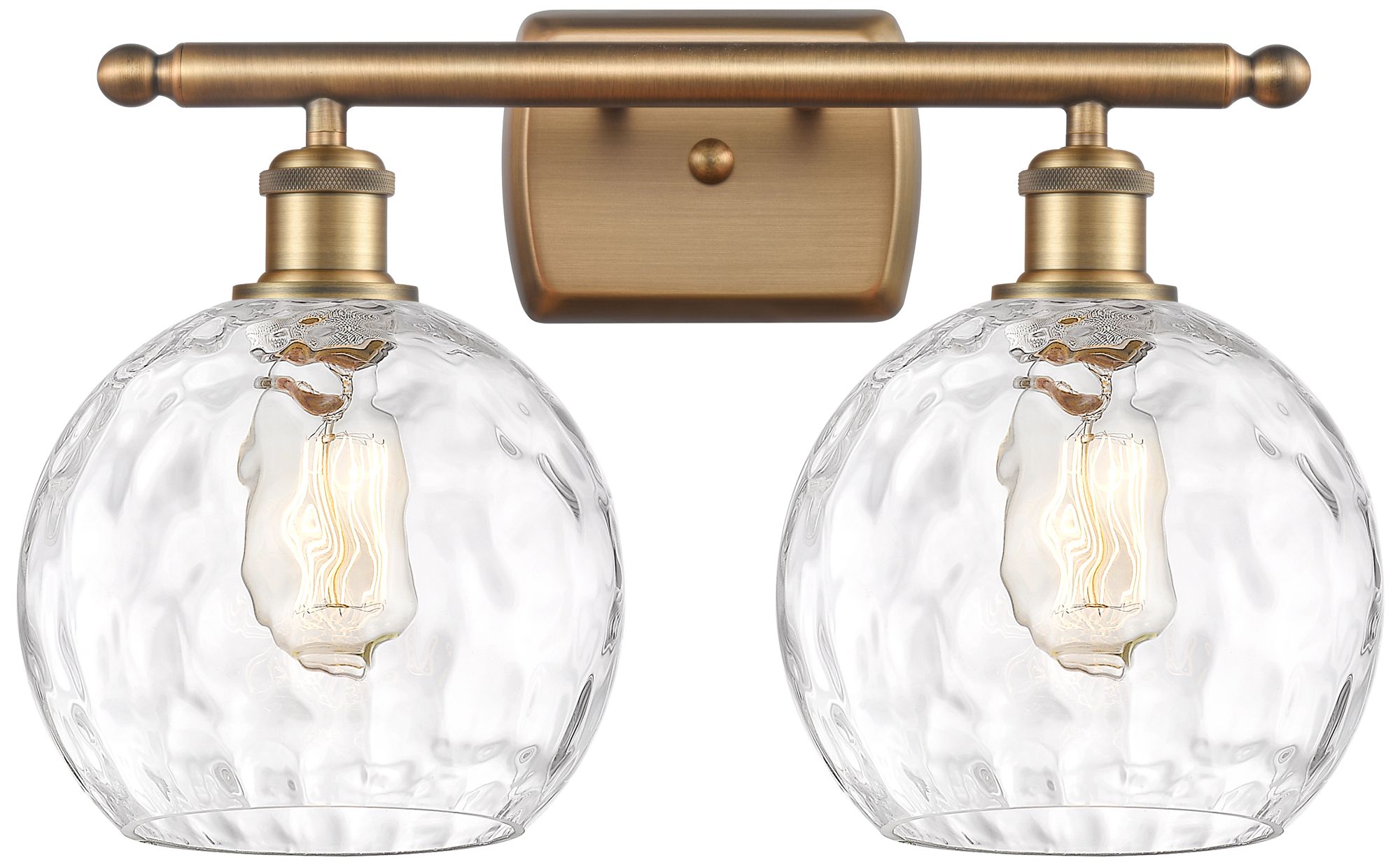 Athens Water Glass 2 Light 18" LED Bath Light - Brushed Brass - Clear