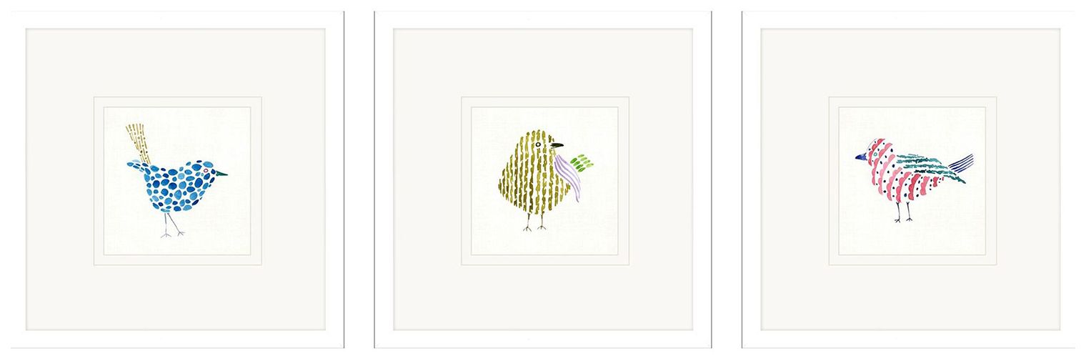 Conversation Birds II 17"W x 17"H Framed Art Set of 3