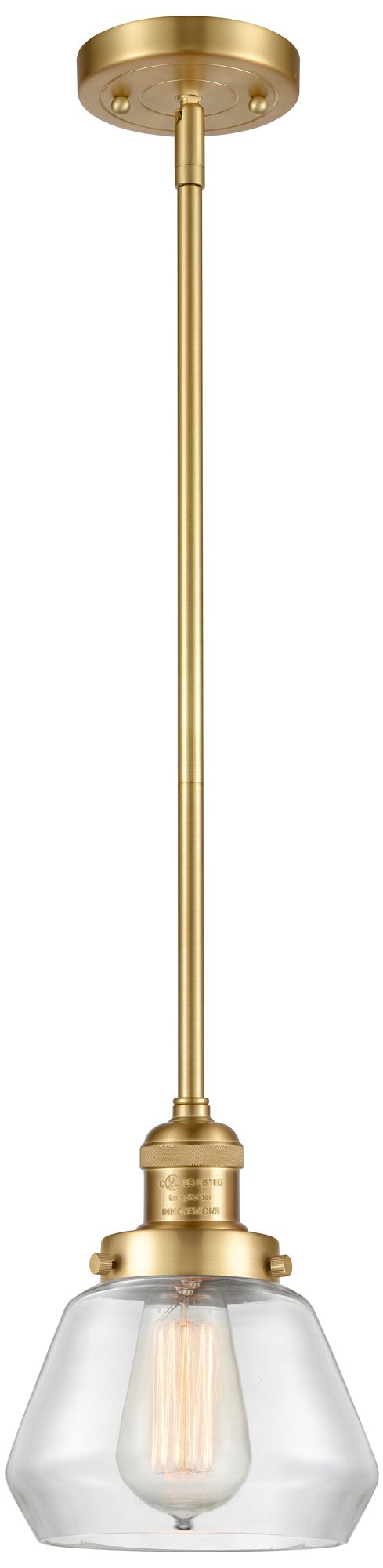 Franklin Fulton 7" Wide Satin Gold Stem Hung Mini Pendant w/ Clear Sha