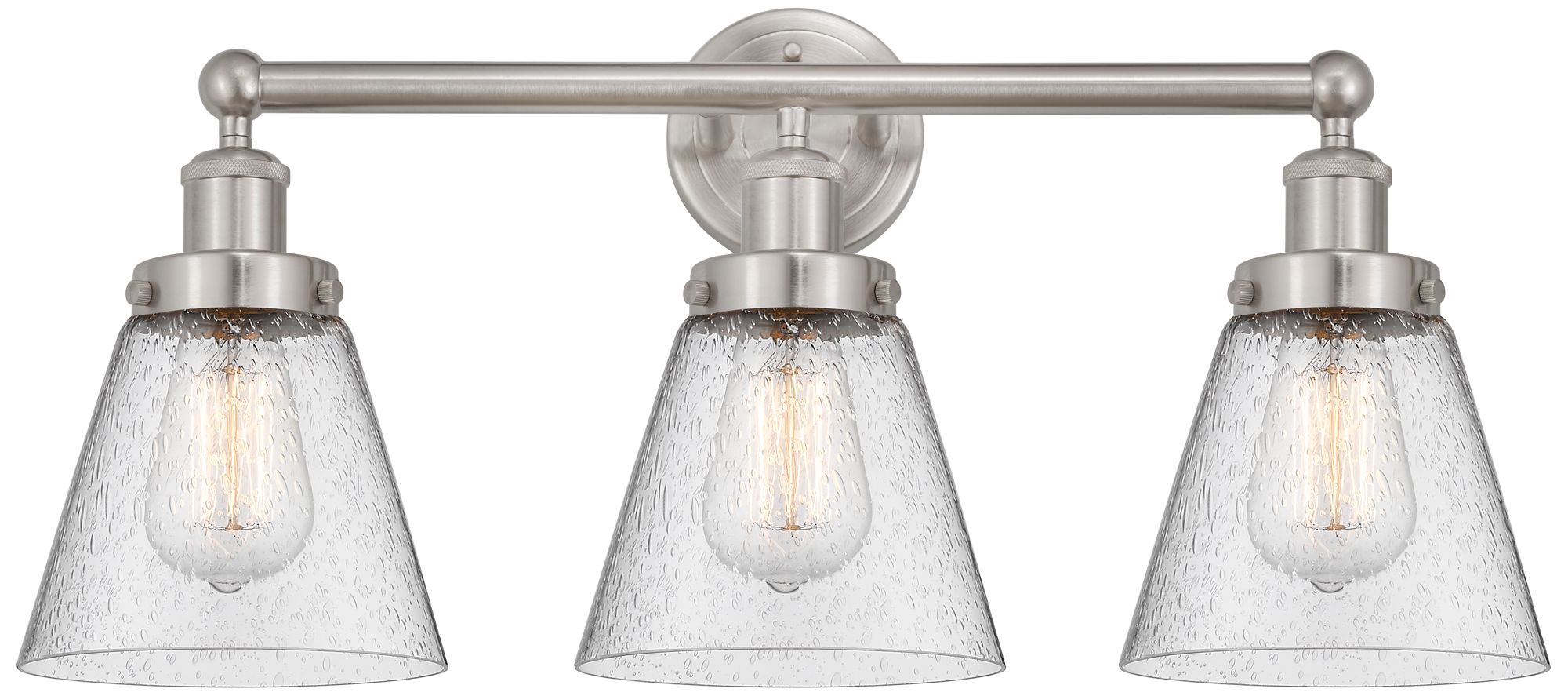 Edison Small Cone 25" 3-Light Brushed Nickel Bath Light w/ Mercury Sha