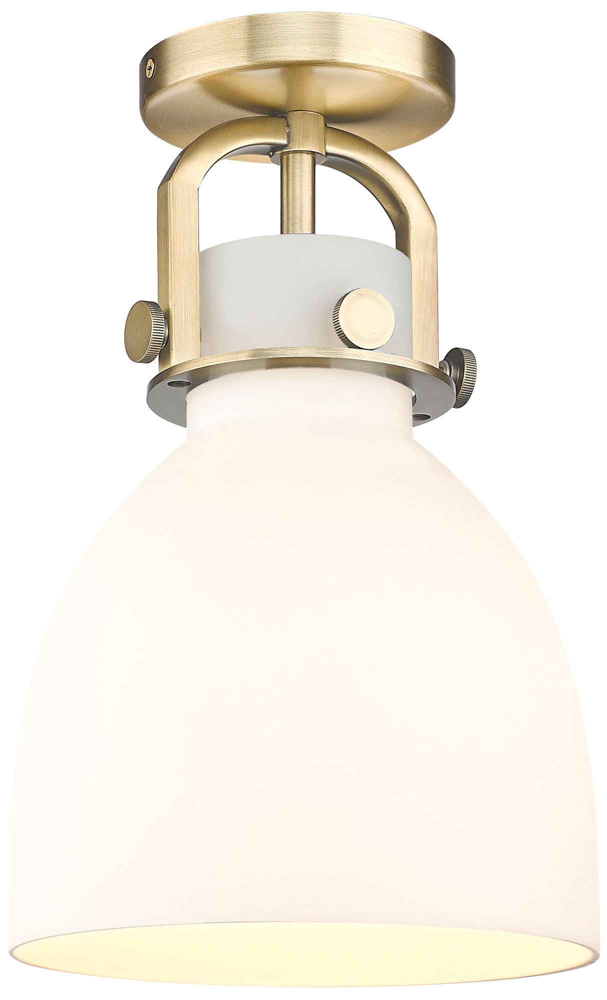 Newton Bell 8" Wide Brushed Brass Flush Mount with White Shade