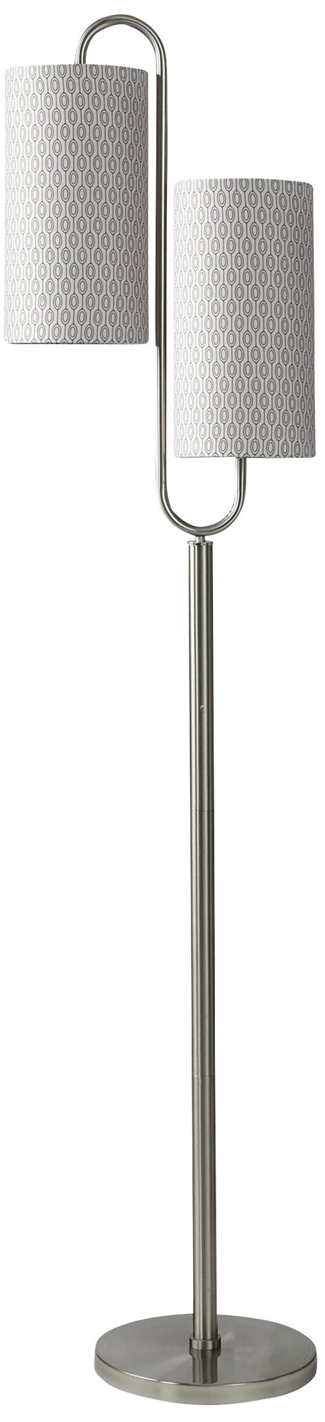 Modern Double Curve 67" Brushed Steel Floor Lamp With Patterned Shades
