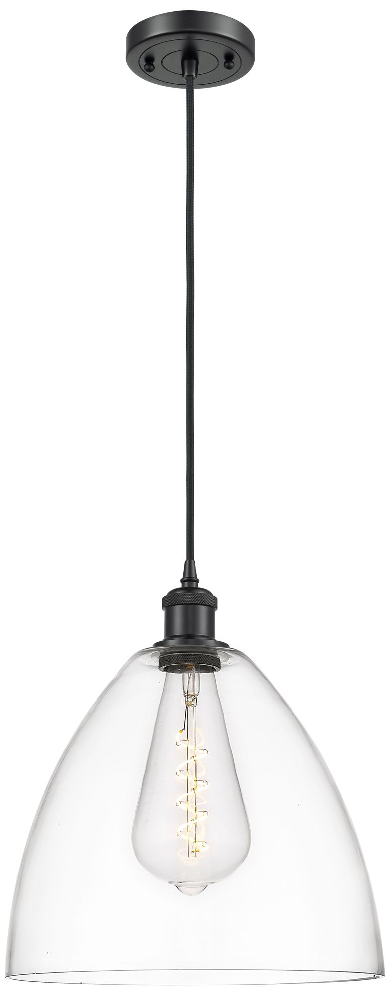 Bristol 12" Wide Matte Black Mini Pendant w/ Clear Glass