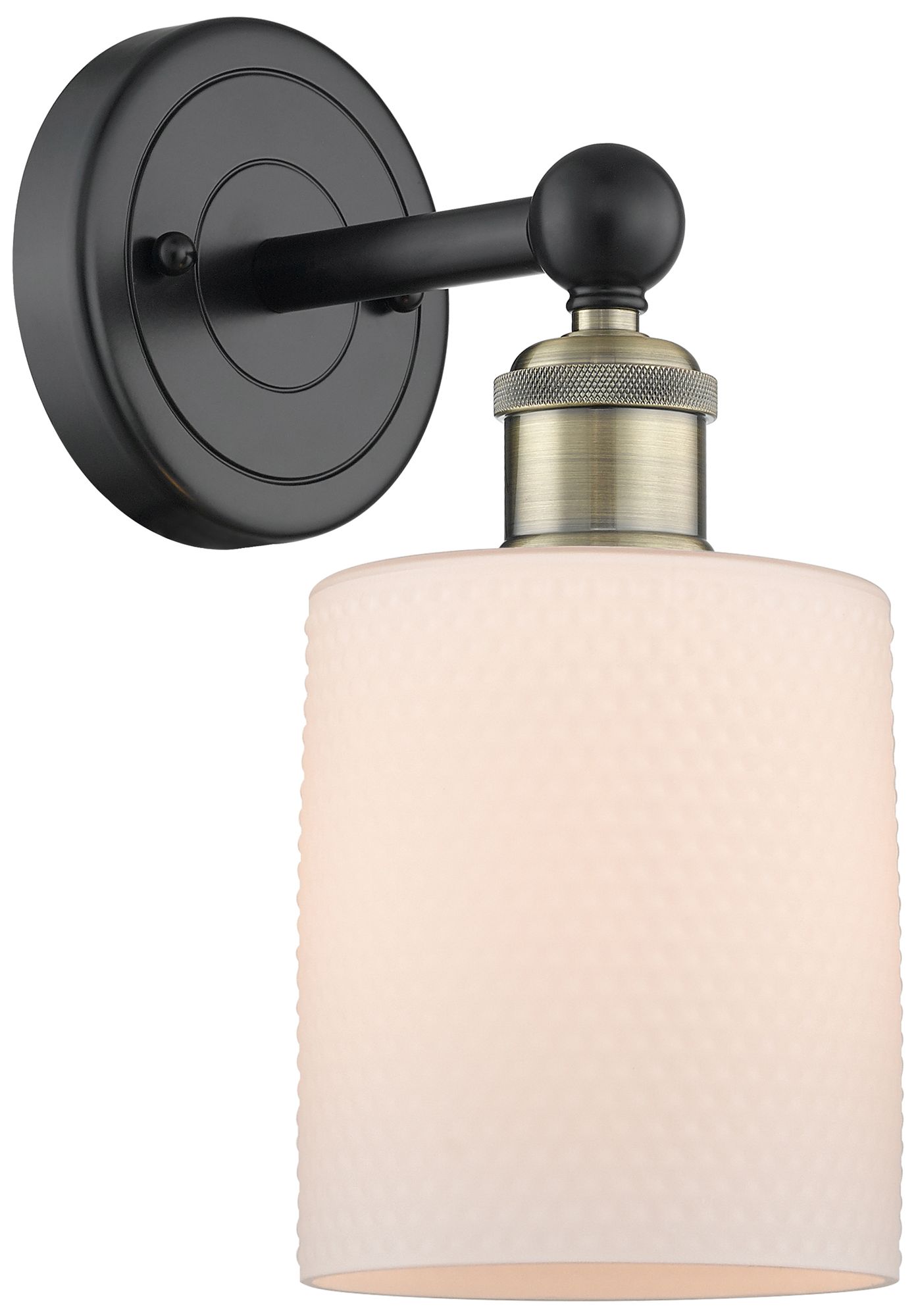 Edison Cobbleskill 11.5"High Black Antique Brass Sconce With White Sha