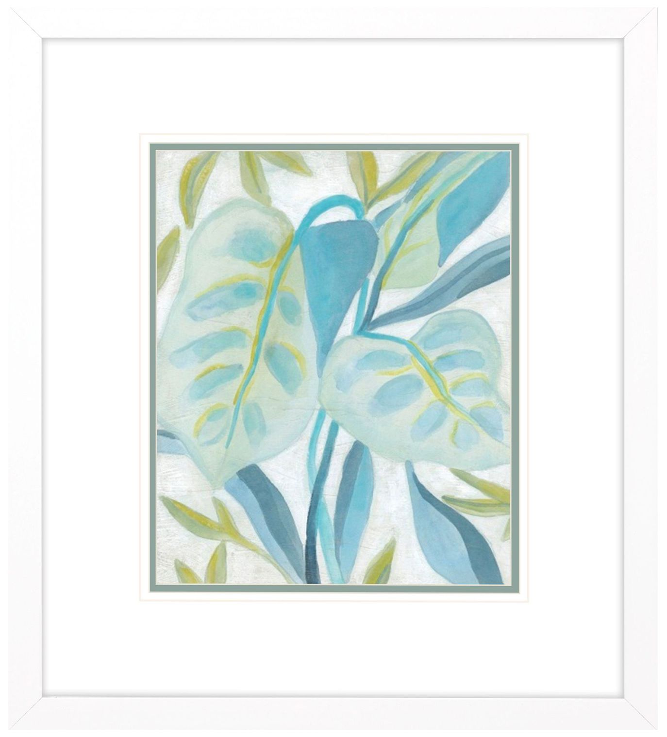 Aqua Tropical Leaves II 29"W x 33"H Framed Art