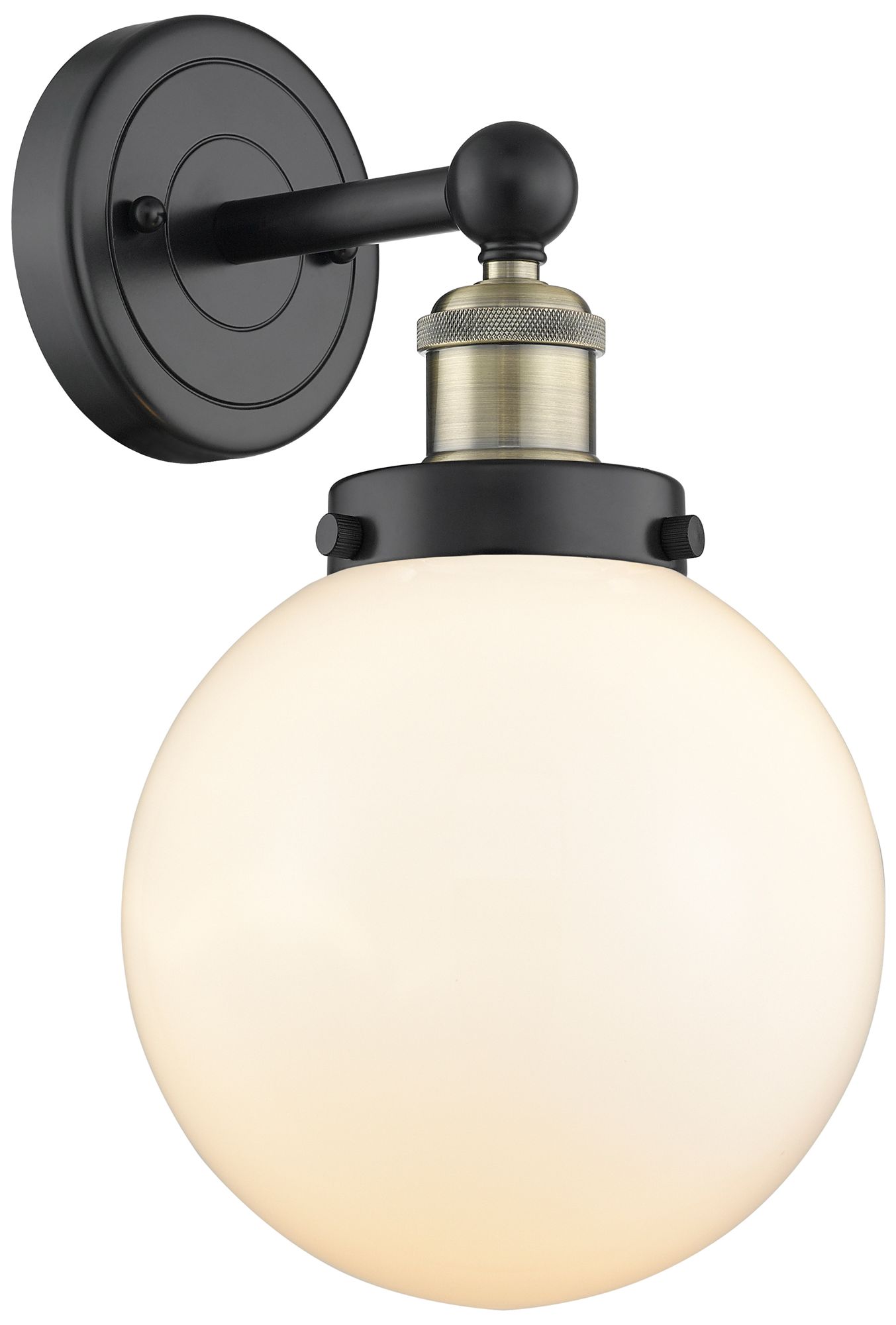 Large Beacon 10"High Black Antique Brass Sconce With Matte White Shade
