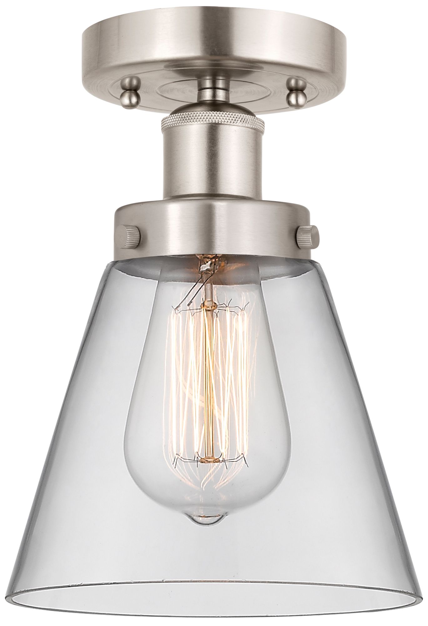 Edison Cone 7" Brushed Satin Nickel Semi Flush Mount w/ Clear Shade