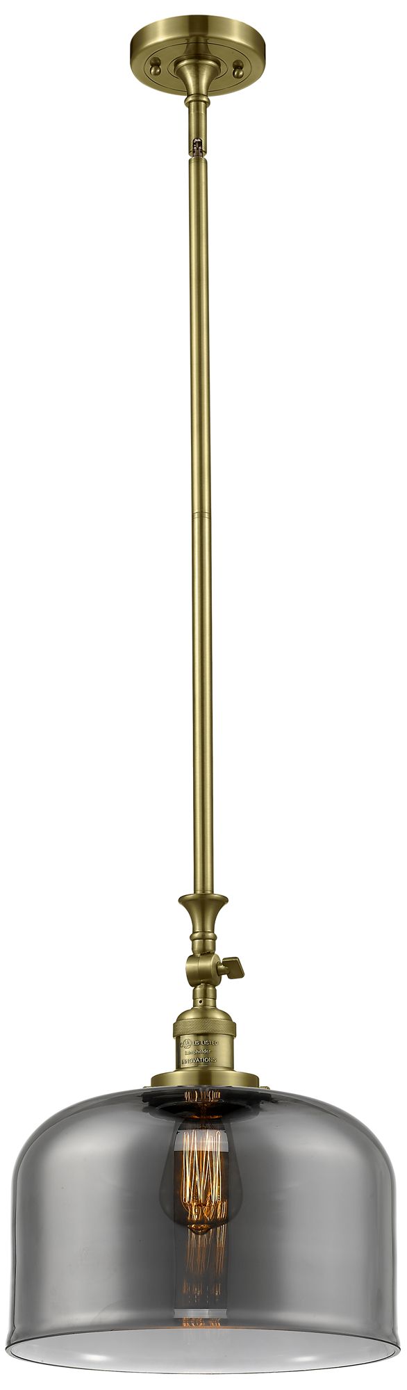 Bell 12" Antique Brass Stem Hung Mini Pendant w/ Plated Smoke Shade