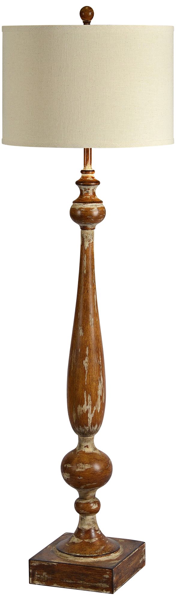 Myra 63" Distressed Brown and Cream Wash Floor Lamp