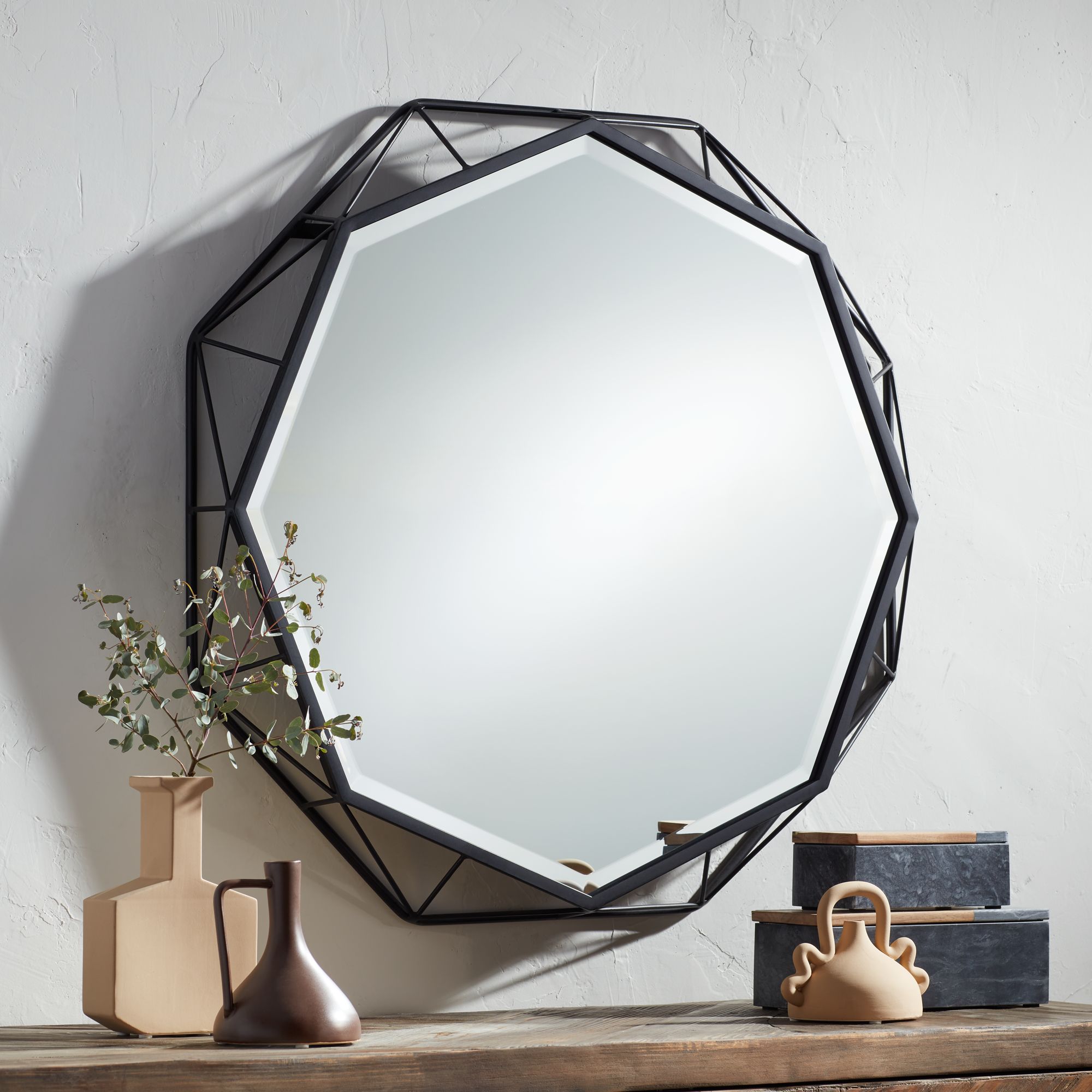 Solanna Matte Black 30" x 30" Octagonal Wall Mirror