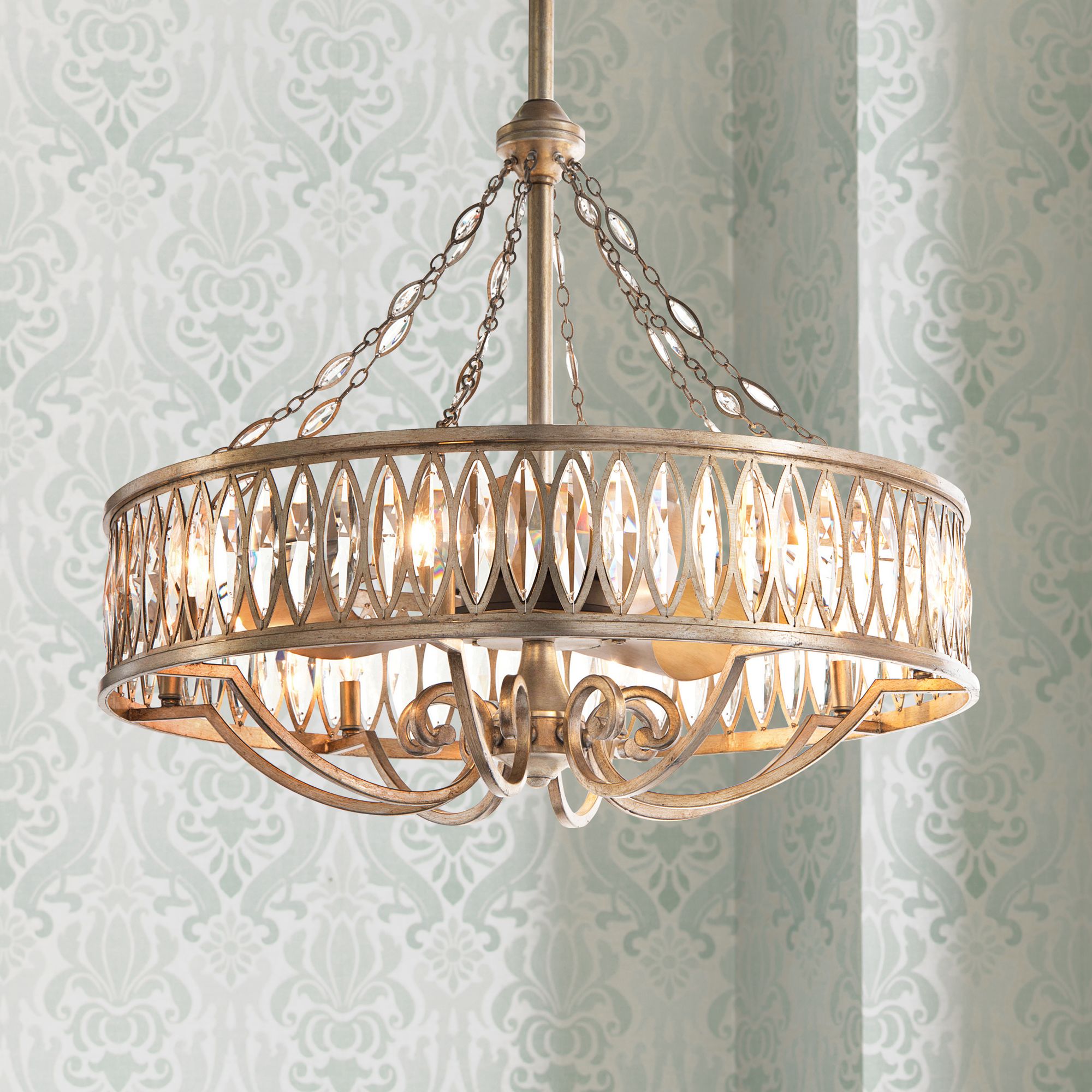 Marquise Crystal 33" Wide Ant Silver Pendant Light with Fan