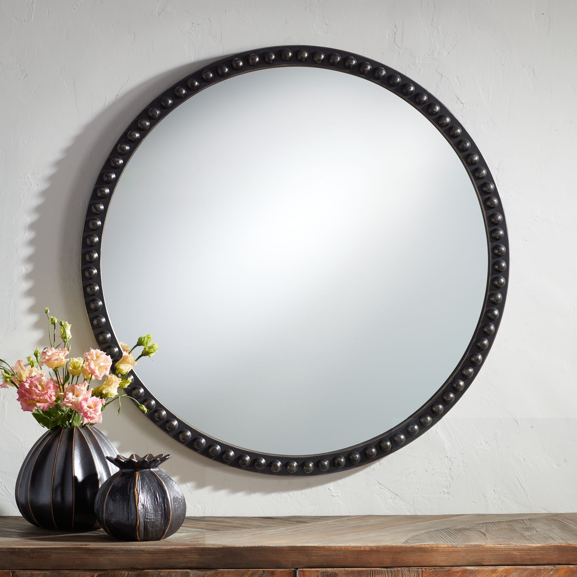 Corwin Black 34" Round Metal Framed Wall Mirror