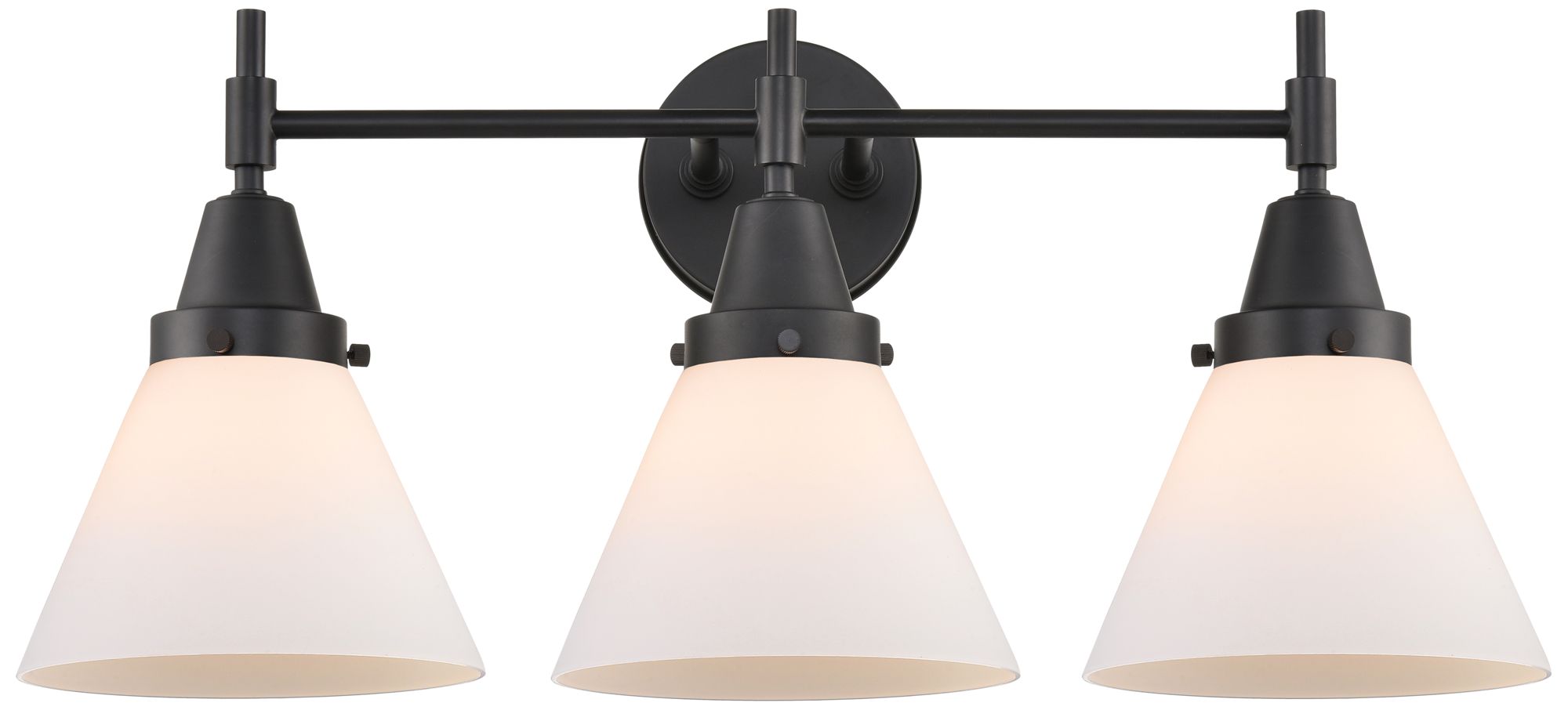 Caden Cone 25.75" Wide 3 Light Matte Black Bath Vanity Light w/ White