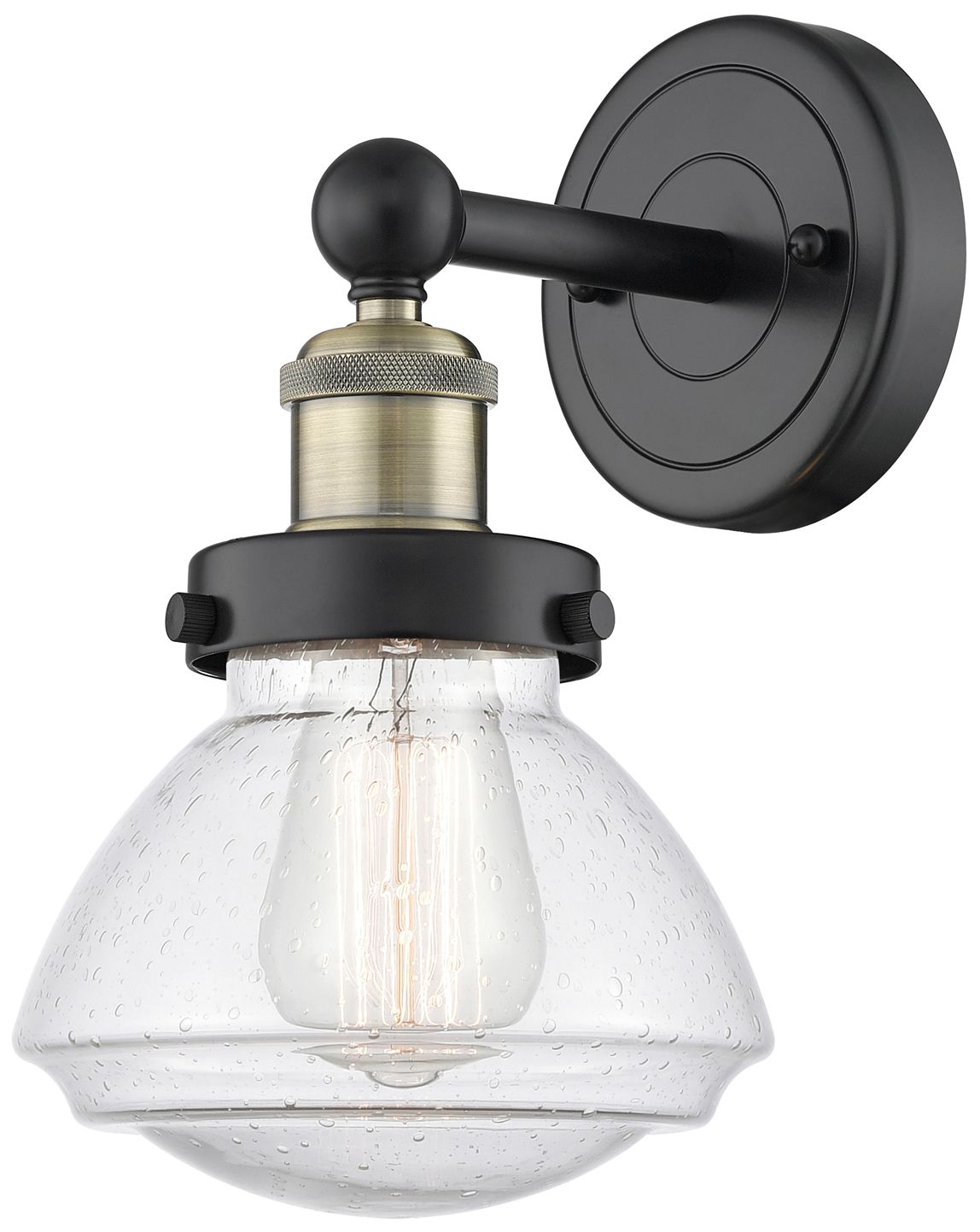 Olean 10"High Black Antique Brass Sconce With Mercury Shade