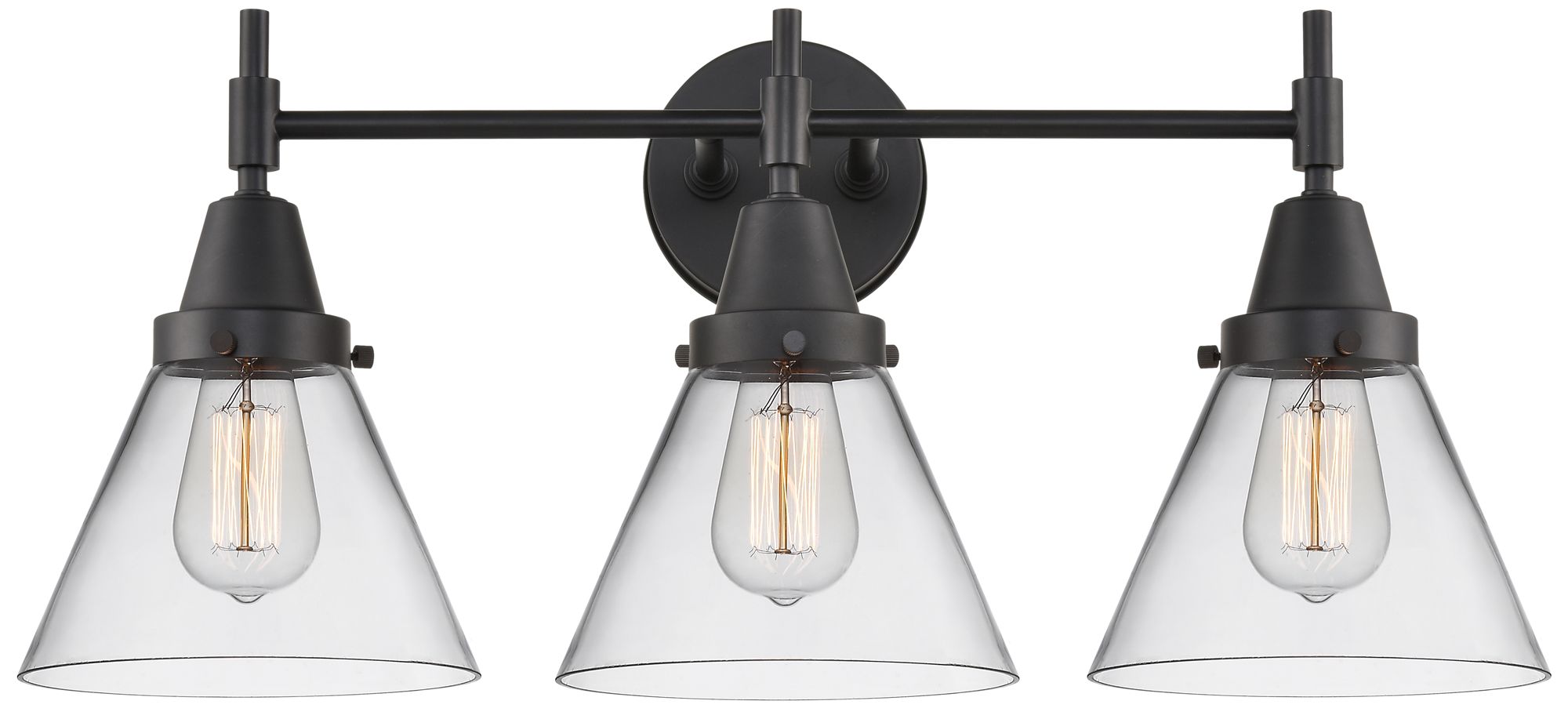 Caden Cone 25.75" Wide 3 Light Matte Black Bath Vanity Light w/ Clear