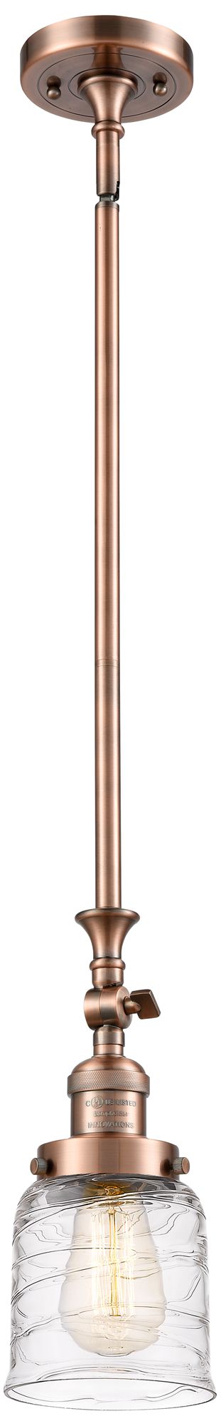Bell 5" Antique Copper Stem Hung Mini Pendant w/ Deco Swirl Shade