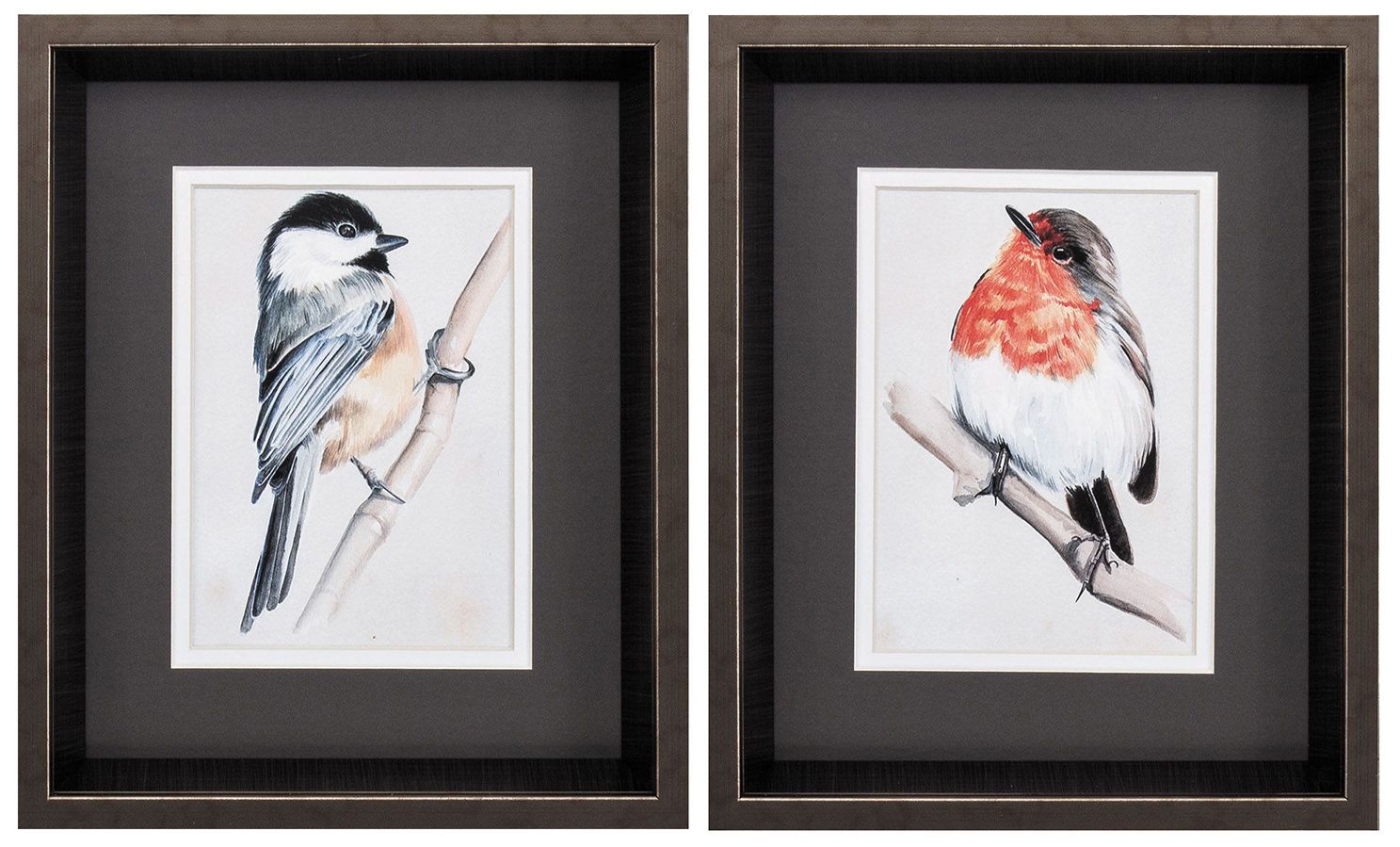 Bird on Branch II 9"W x 11"H Framed Art Set of 2