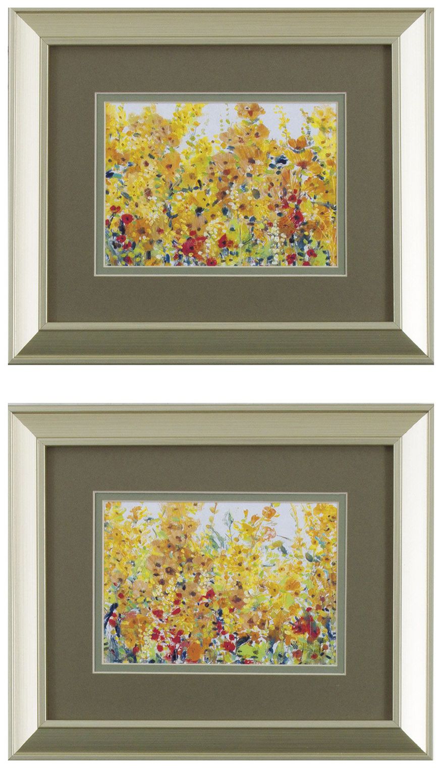 Golden Summer Garden 12"W x 10"H Framed Art Set of 2