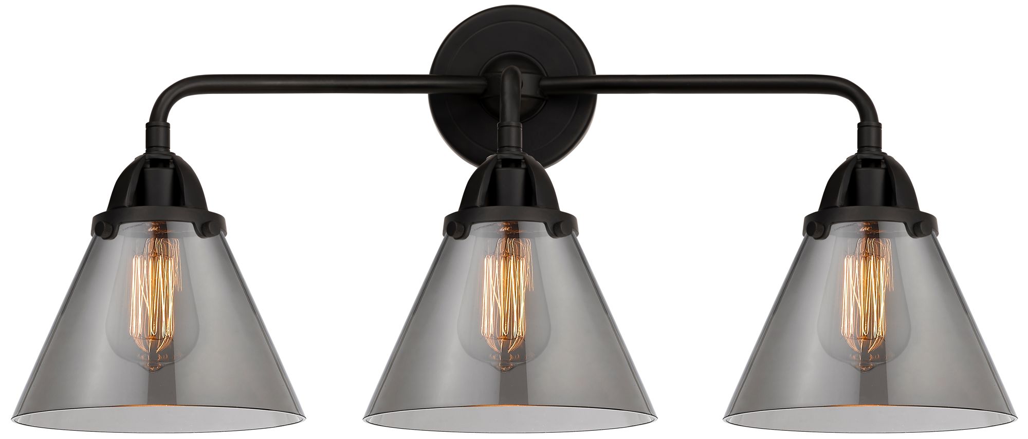 Nouveau 2 Cone 8" 3 Light 26" Bath Light - Matte Black - Plated S