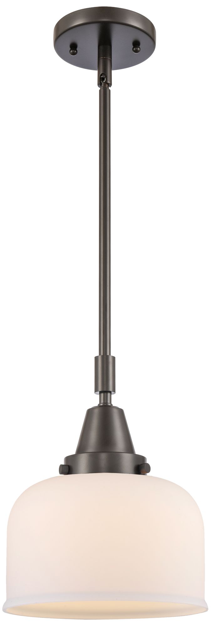 Caden Bell 8" Wide Bronze Stem Hung Mini Pendant w/ Matte White Shade
