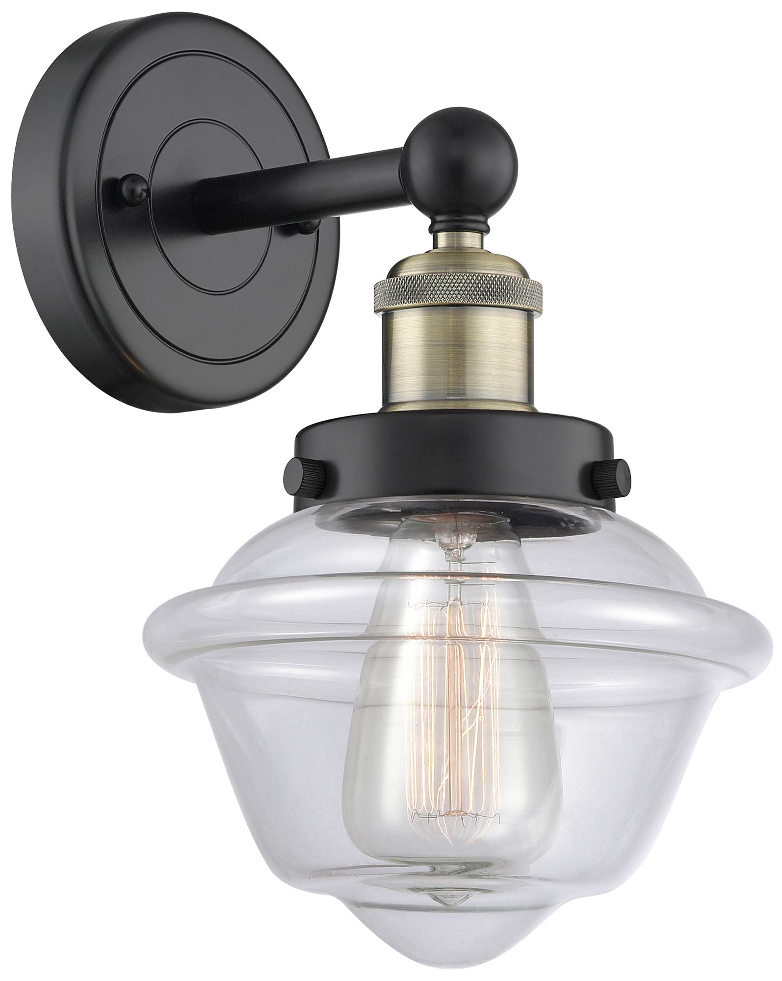 Oxford 10"High Black Antique Brass Sconce With Clear Shade