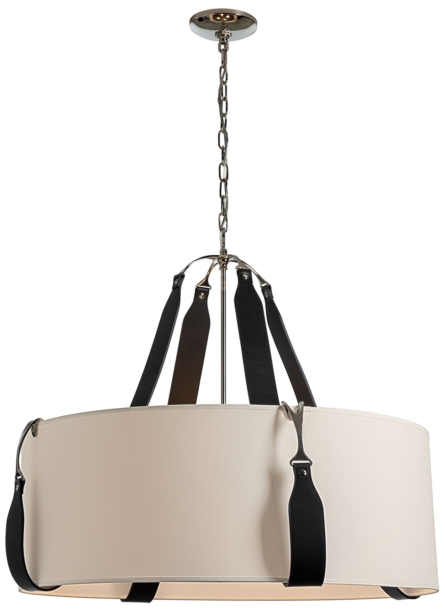 Saratoga 31.9"W Large Black Leather Accented Polished Nickel Pendant