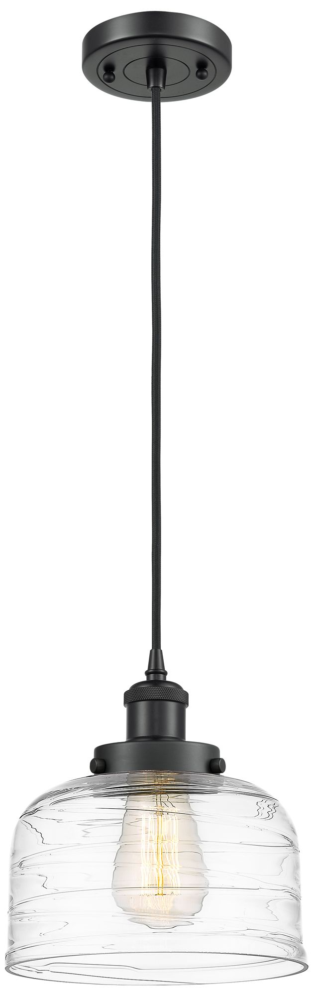 Ballston Urban Bell 8" Matte Black Corded Mini Pendant w/ Deco Swirl S