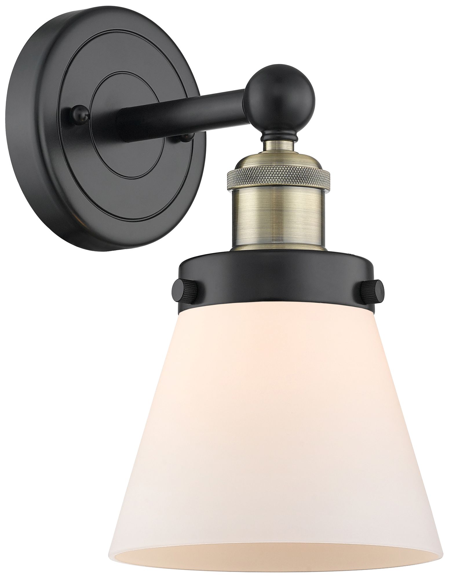 Small Cone 10"High Black Antique Brass Sconce With Matte White Shade