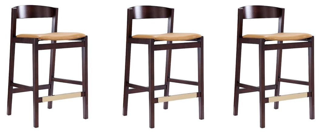 Klismos Counter Stool in Camel and Dark Walnut (Set of 3)