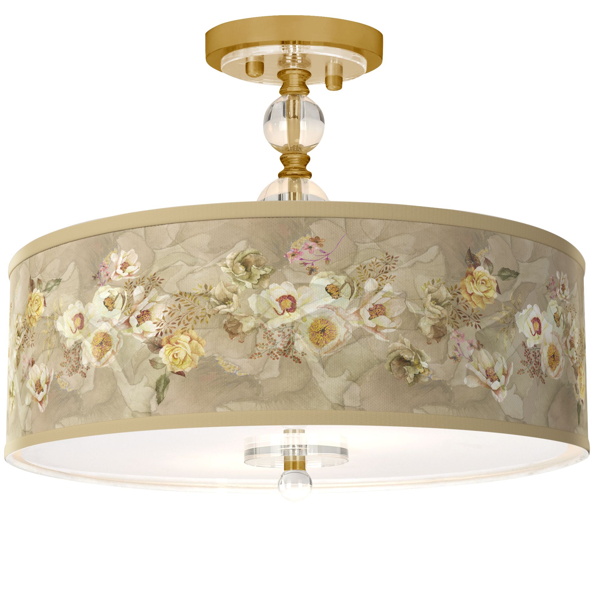 Floral Spray Giclee 16"W Gold Semi-Flush Ceiling Light