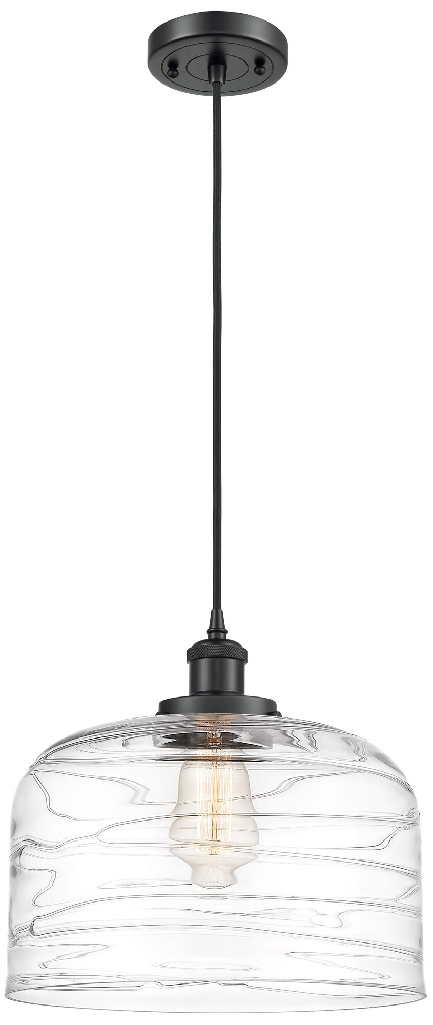 Ballston Urban Bell 12" Matte Black Corded Mini Pendant w/ Deco Swirl