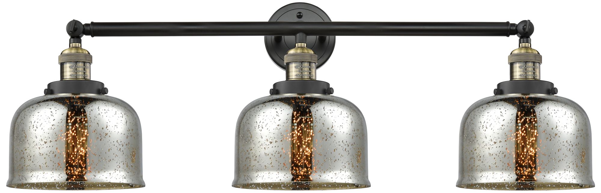 Bell 3 Light 32" Bath Light - Black Brass - Silver Mercury Shade