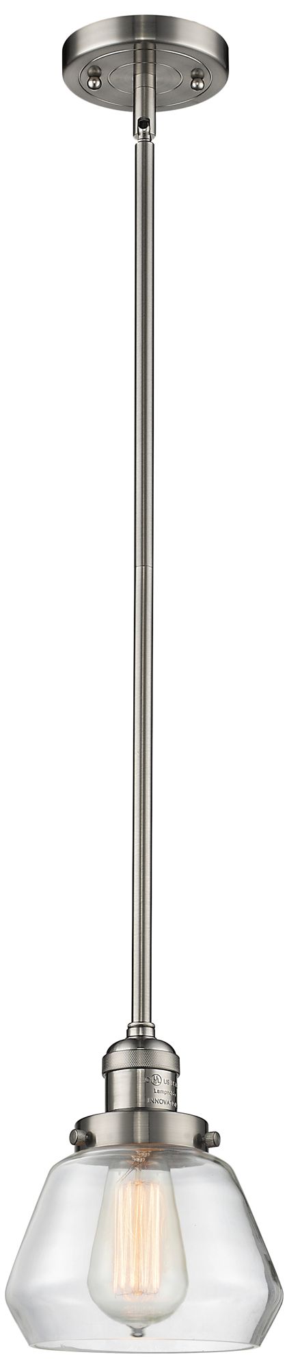 Franklin Fulton 7"W Brushed Nickel Stem Hung Mini Pendant w/ Clear Sha