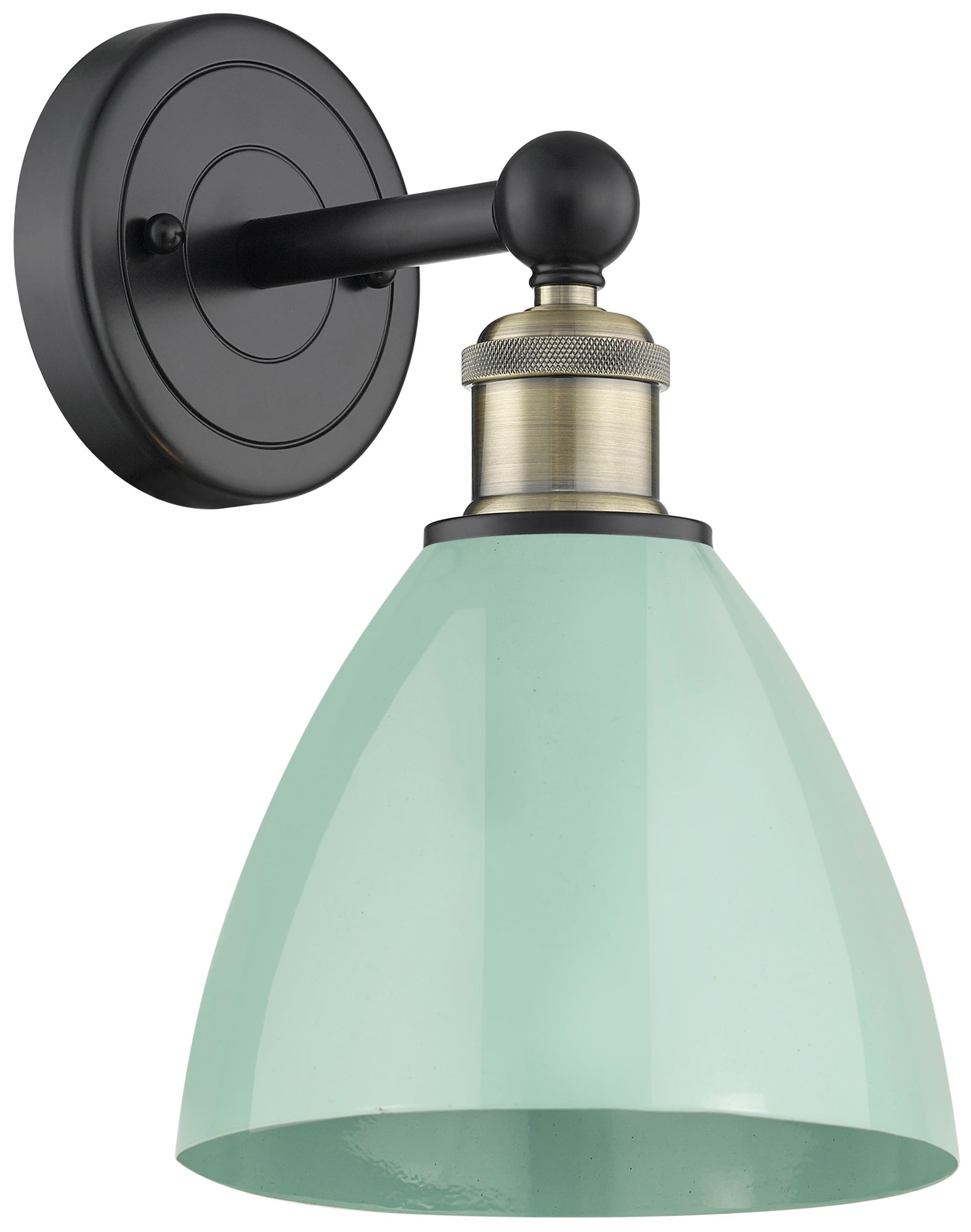 Edison Plymouth Dome 12"High Black Antique Brass Sconce With Seafoam S
