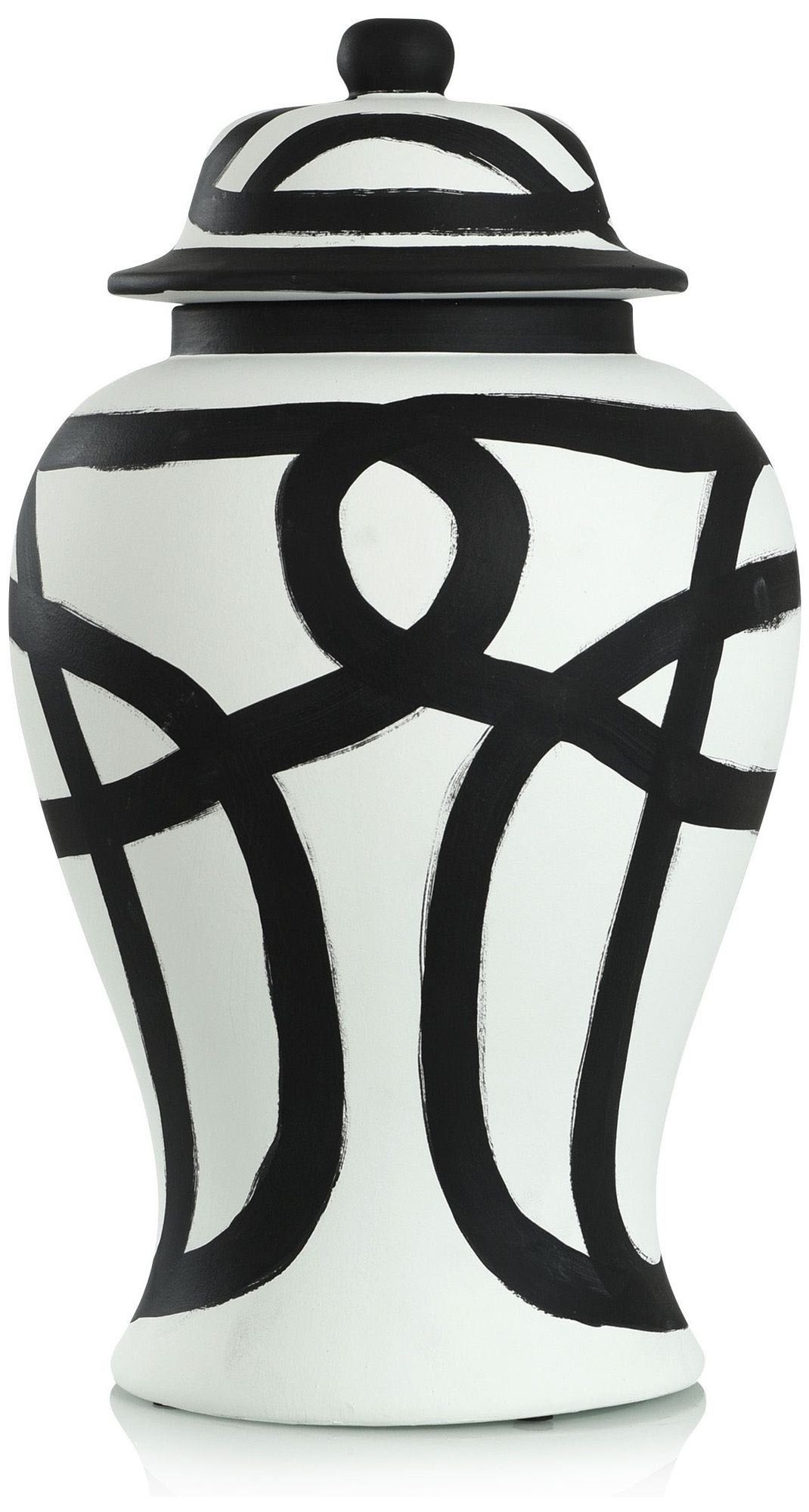 Riven 21"H Black and White Ceramic Ginger Jar with Lid