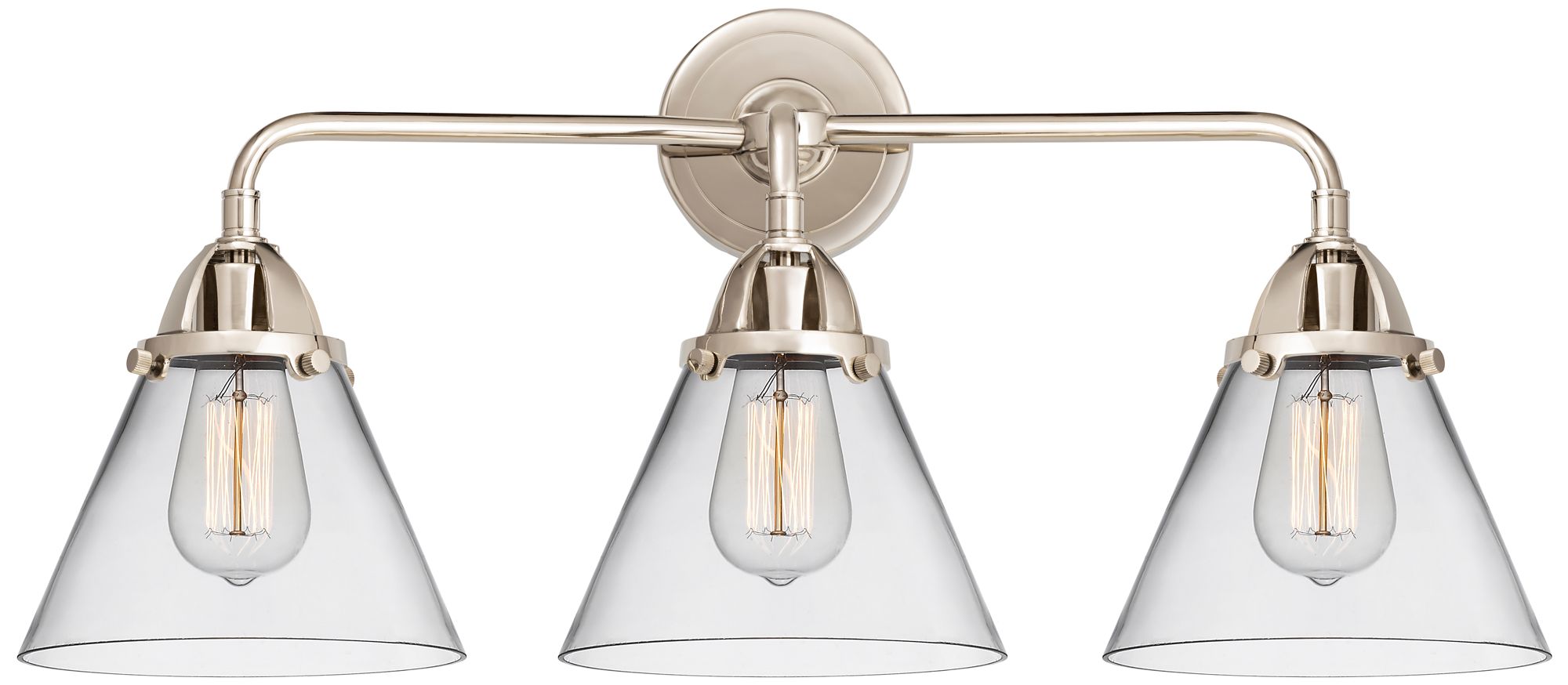 Nouveau 2 Cone 8" 3 Light 26" Bath Light - Polished Nickel - Clea