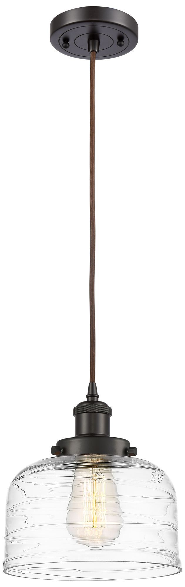 Ballston Urban Bell 8" Oil Rubbed Bronze Corded Mini Pendant w/ Deco S