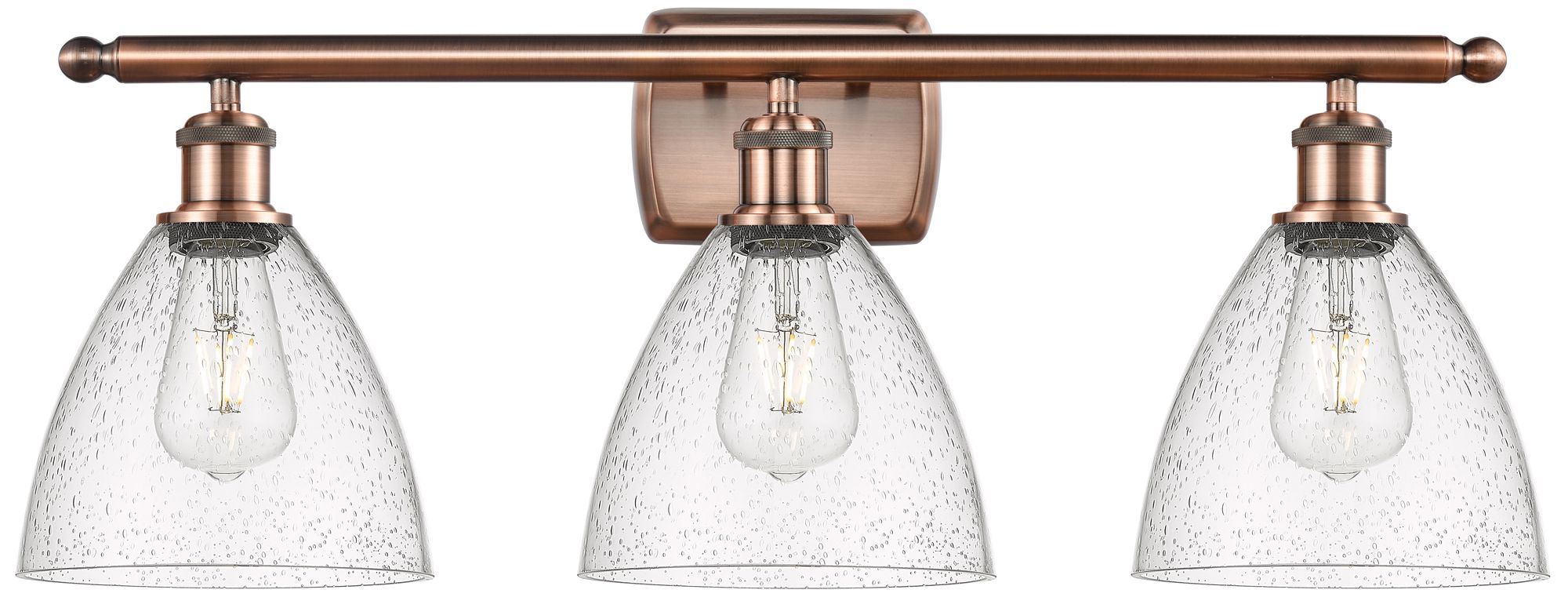 Bristol Glass 3 Light 28" Bath Light - Antique Copper - Seedy Shade