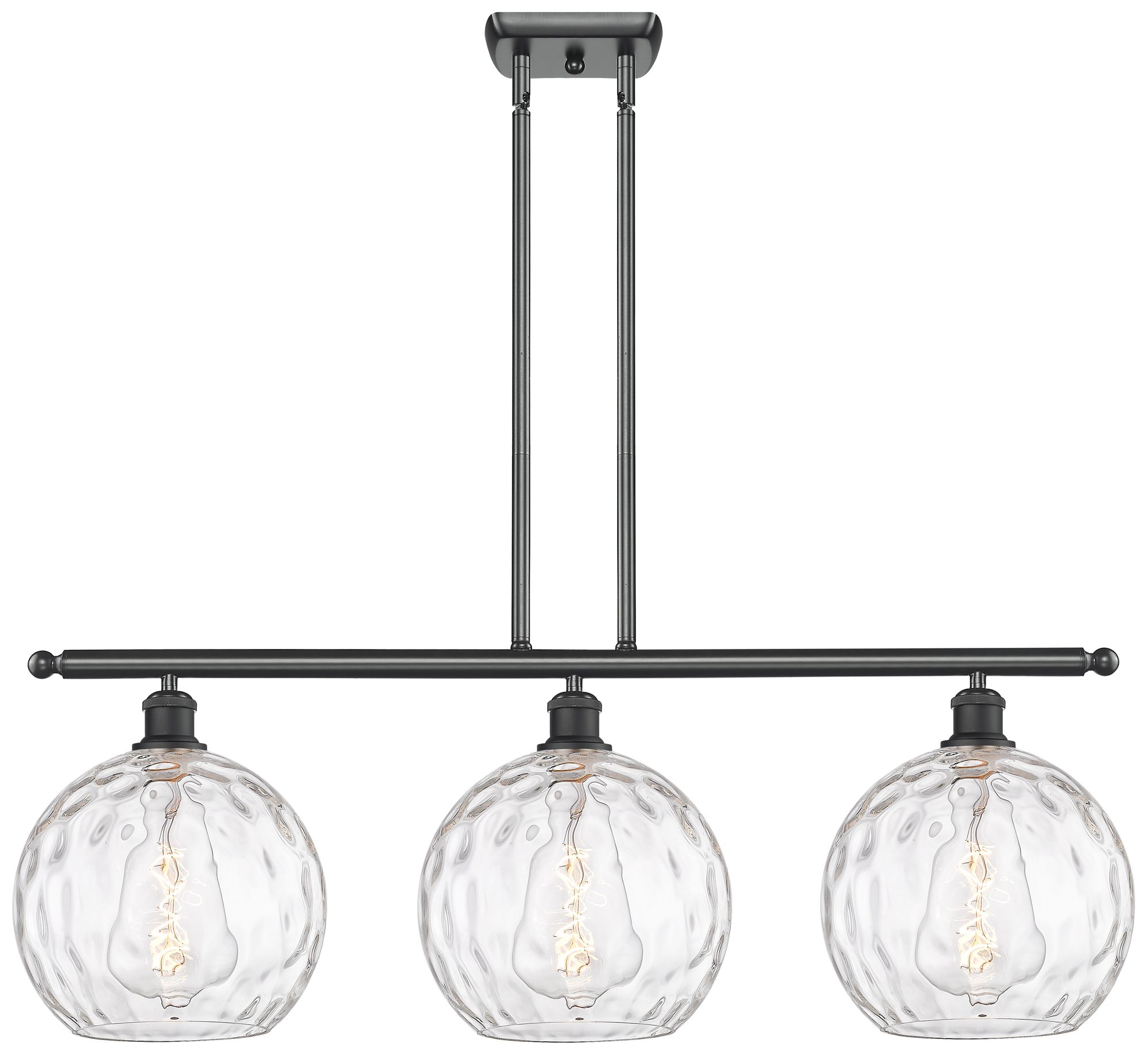 Athens Water Glass 3 Light 37" Island Light - Matte Black - Clear