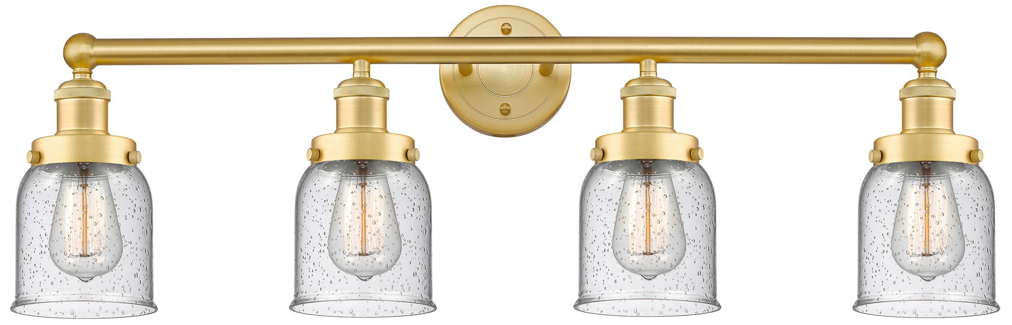 Small Bell 33.5" Wide 4 Light Satin Gold Bath Vanity Light With Seedy