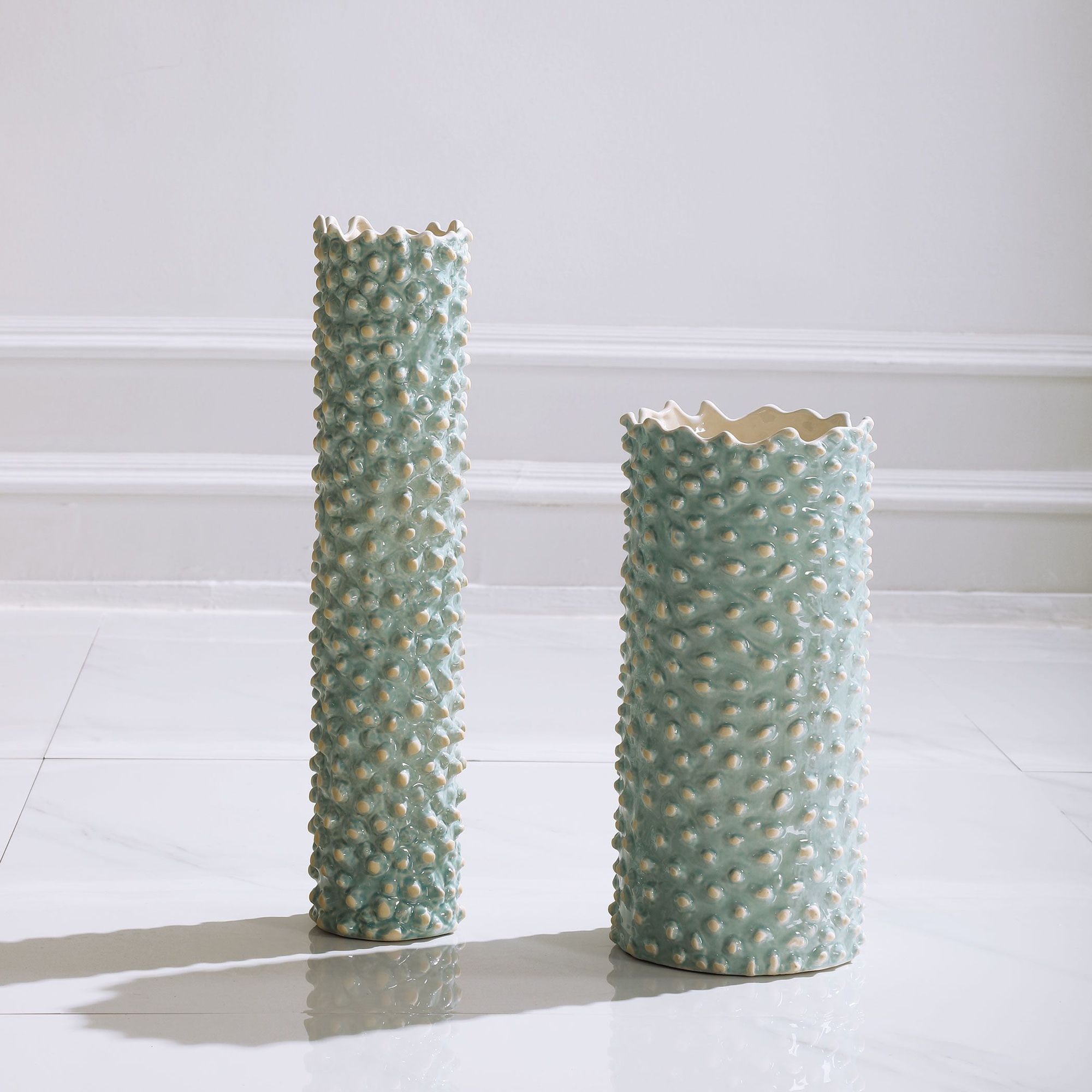 Uttermost Ciji 18" High Aqua Ivory Ceramic Vases Set of 2