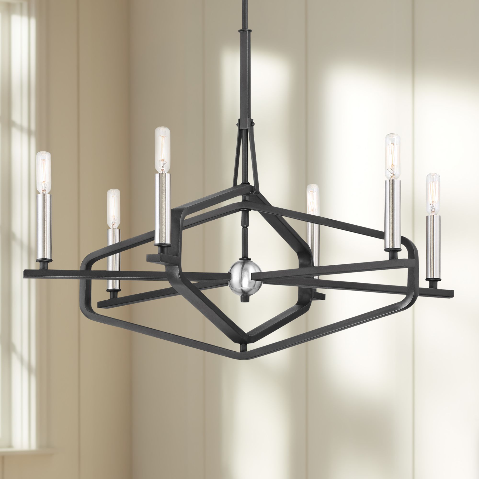 Traveler 28" Wide Sand Coal and Brushed Nickel 6-Light Chandelier