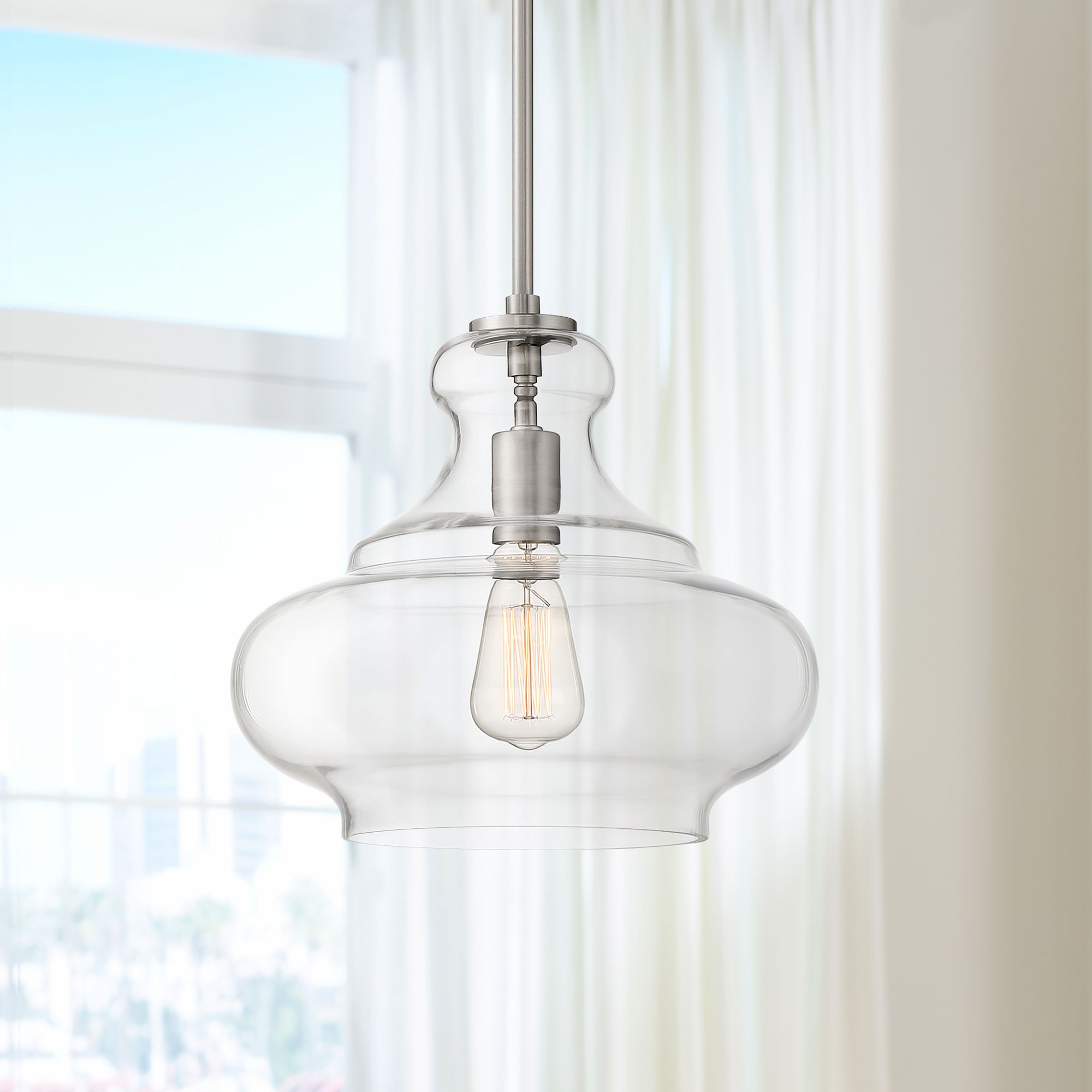 Possini Euro Declan 12 3/4"W Brushed Nickel and Glass Pendant Light