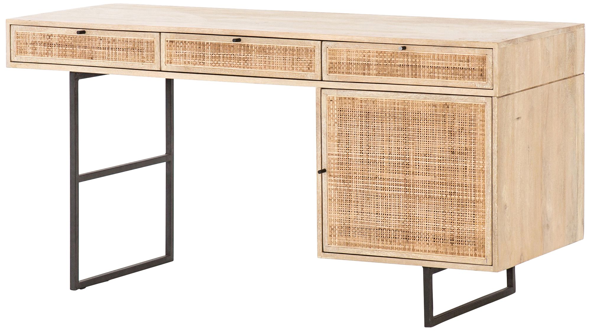 Carmel 60" Wide Natural Mango and Light Cane 3-Drawer Desk