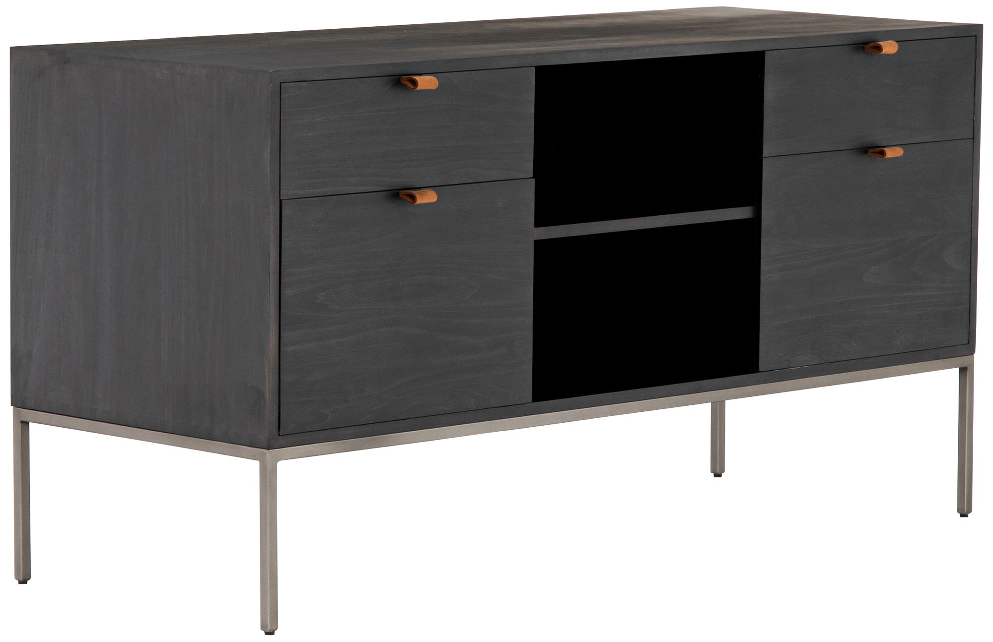 Trey 59 3/4" Wide Black Wash Poplar 4-Drawer Filing Credenza