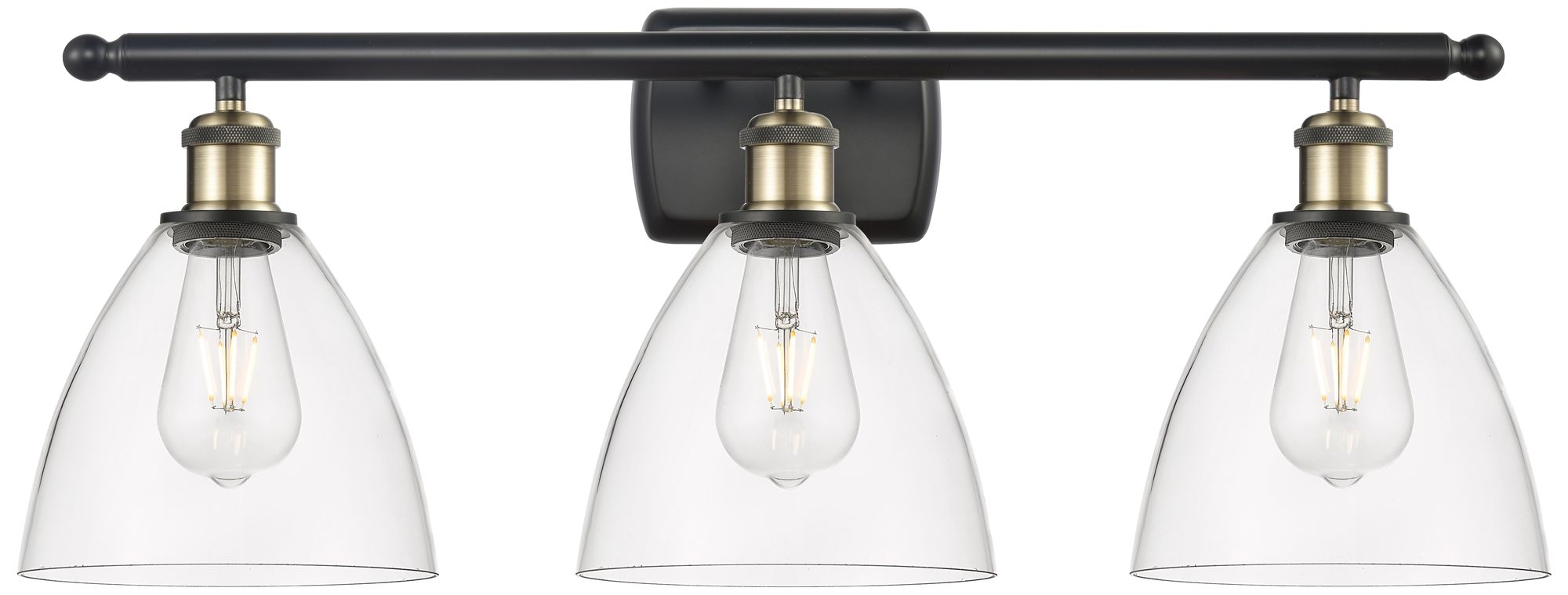 Bristol Glass 3 Light 28" Bath Light - Black Antique Brass - Clear Sha
